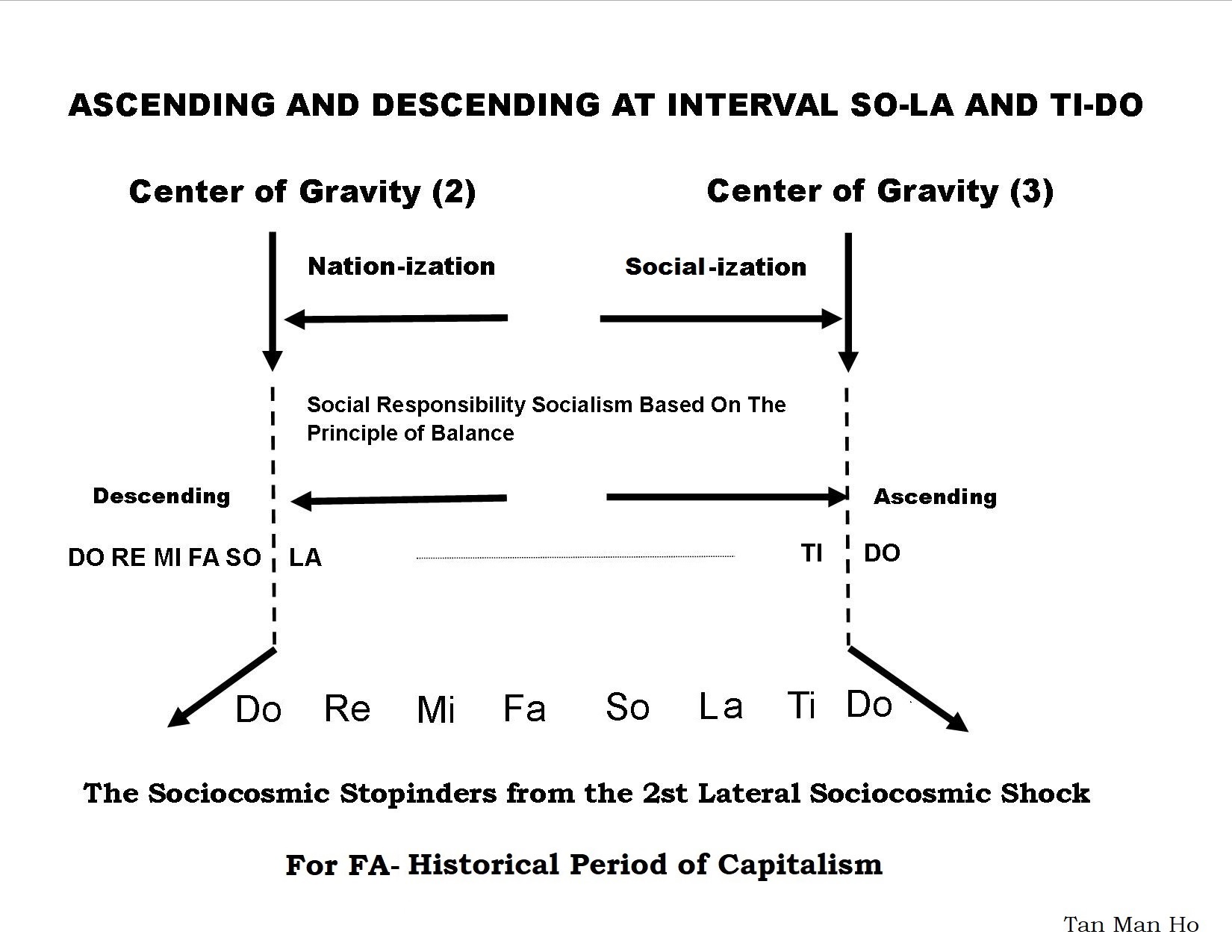 "Along the MAINSTREAM Fundamental Natural Historical Sociocosmic Specie-Stopinders Octave, Primitive Communalism (Intermediate and Advanced inclusive) is born as natural but unnamed Westphalian "FLJRES-DR" fixates (Freedom, Liberty, Justice, Rights, Equality and even Suffrage - Democracy-Republic) as it is naturally Social Circularity structured with subconscious noomakhian Light at the lowest level and Communism and Datongism is a return, revised and learned improved and conditioned till stabilized as Advanced Social Circularity structured with conscious noomakhian Light at the highest level and would be naturally an FLJRES-DR fixates proper truly REAL at the essential core (and certainly NOT Pseudo and peripheral as it has been in the past in the Westphalian MI-FA Interval ABYSS). In the MI-FA Interval ABYSS (the 1st Shock of the lateral octave) of this same Fundamental Natural Historical Sociocosmic Specie-Stopinders Octave, where Ancient Slavism, Feudalism (Medieval and Renaissance), Capitalism (Colonialism, Imperialism, Fascism, Nazism, Militarism and Hegemonism inclusive) are posited with Social Pyramidization structured (Right Standing Social Pyramids) born ill-fatedly and with the malevolent noomakhian Dark full of pseudo FLJRES-DR fixates - a real terror-of-the-situation. Socialism being a transition society is inverted Social Pyramidization structured (Inverted Social Pyramids) always posited at the nodal line and beyond at higher level. In the MI-FA Interval ABYSS, the Right Standing Pyramids-Inverted Social Pyramids conversion happened many times each time with the renaming of ancient slavistic kingdoms, feudalistic dynasties, imperial-dynasties, Westphalian states and nations across millennia and in accordance to the law of transition of the quantitative changes into qualitative change and vice-versa, and the law of negation of negation." The nodal point where right-standing capitalistic-colonialistic-imperialistic-essenced, exploitative and oppressive social pyramids of the laujinggong carriages of the Historical Sociocosmic Species of Capitalism in severe antagonistic polar FA-SO-LA-TI contradiction with the emerging inverted socialistic-essenced, non-exploitative and non-oppressive social pyramids of the gongjingdong carriages of the Historical Sociocosmic Species of Socialism may be considered an Armageddon Point for Earth civilization because the law of reciprocal destruction has reached the destruction level approaching 10^10 Megawatts in the Kardashev Scale of Civilization Type I; however, the law of reciprocal nourishment has also reached the constructive level approaching the 10^10 Megawatts in the same Kardashev scale; and the destruction-construction has also reached the seventh level, 'TI' at this Armageddon Point in a probability of 50-50 of a full spectrum nuclear war world wide. Nay more, according to the law of three, there is also a law of reciprocal feeding that lurks in between as the obscure and obfuscating third law. The Anglo-American (Western) civilizational TI-laujinggong carriages (G7) of the FA-Historical Sociocosmic Species of Capitalism, its hegemony and empire is now collapsing and in its place the Sinic (Chinese) civilizational TI-Dongjinggong carriages (BRICS+) of the SO-Historical Sociocosmic Species of Socialism, its leading role amongst the multipolar nations is now rising and favored. Capitalistic-essenced colonialism and imperialism begets capitalistic-essenced empire; disguised capitalism behind socialism leads to failed socialism with social colonialism and social imperialism and begets pseudo-socialistic-essenced empire and would still collapse like the USSR Empire. A proper and normal SO-Historical Sociocosmic Species of Socialism would have no empire in its essence! The arising and emergence of the SO-Historical Sociocosmic Species of Socialism to be the main sociocosmic gravity-center vibration at the 7th level (TI) platform along a sociocosmic octave is no simple as there is a MI-FA Interval for this Fundamental Natural Historical Sociocosmic Specie-Stopinders Octave, where the forces of Hegemonism (ti) and its past deeply buried building blocs hidden within such as its sociocosmic specie-genetic coded Fascism (la), Imperialism (so), colonialism (fa), capitalism (mi), and also feudalism (re) and ancient slavism (do) forms a formidable power of retardation/deceleration or resistance for the leap out of this MI-FA Interval of antagonistic exploitative social pyramidization fully under the active law of reciprocal destruction. In this understanding, the SO-Historical Sociocosmic Species of Socialism, being a rising and emerging sociocosmic stopinder being, needs to manage the declining powerful forces of retardation under the law of reciprocal destruction and the emerging also powerful or even more powerful forces of acceleration needed under the law of reciprocal nourishment to synthesize the various infantile SO-Historical Sociocosmic Species of Socialism, and feeding, caring and protecting them until they become independent socialistic-essenced nation-stopinders with real sovereignty free from the mystical spell and the deadly grip of capitalistic-essenced hegemonism and its supporters. While capitalism has stopinderated innerly through capitalistic-essenced colonialism, imperialism, fascism and finally, Hegemonism, feudalism too has innerly stopinderated in similar feudalistic-essenced colonialism, imperialism, fascism and hegemonism but more on a regional scale. As to ancient slavism and modern slavism, its slavery-essenced is more of conquering and capturing people from other countries, native civilizations and turning them into slaves, their vassals, colonies, territories, sovereignties and other properties were traded in the ancient slavery market, and in the modern slavery market of the 19th and 20th centuries through agreements of the lateral corporate stopinder beings of the MI-FA Interval and through treaties of the lateral